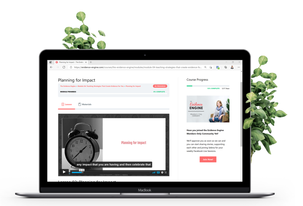 Click the button below to get access to the step-by-step, self-paced course that’s going to show you how to create powerful evidence of impact.